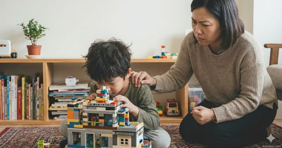 在要求停止前,先花一分鐘加入他。「哇,你蓋的這個結構好複雜!」先同理他的世界,讓他覺得你是夥伴,防衛機制才會降低。